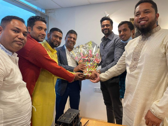 সোমবার বিকেলে চাষাঢ়ায় তার নিজ কার্যালয়ে এই ফুলেল শুভেচ্ছা জানান নব নির্বাচিতরা।