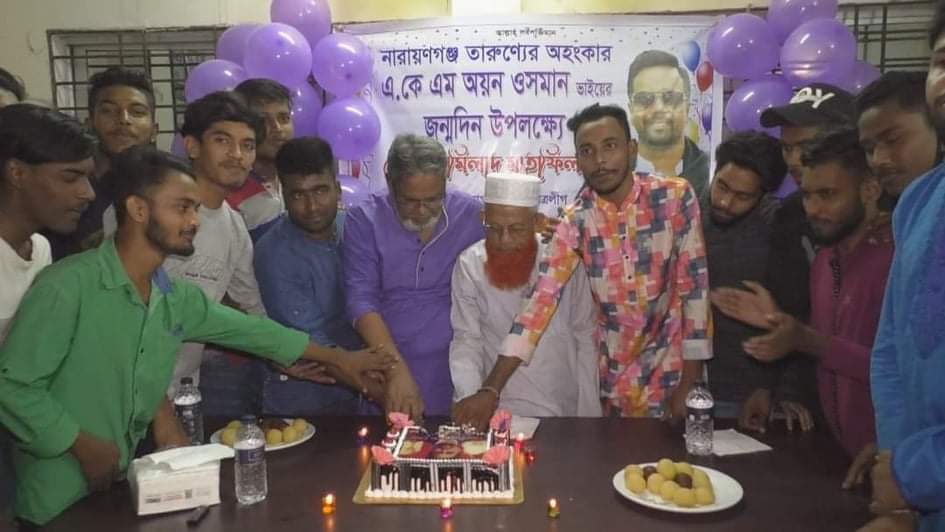 ওসমান পরিবারের সুযোগ্য উত্তরাধিকারী ও জেড এন্ড গ্রুপের ব্যবস্থাপনা পরিচালক একে এম অয়ন ওসমানের জন্মদিন উপলক্ষে নারায়ণগঞ্জের মসজিদ, মন্দির সহ ২৫০টি স্থানে দোয়া, মিলাদ মাহফিল, বিশেষ প্রার্থনা ও কেক কাটা অনুষ্ঠিত হয়।