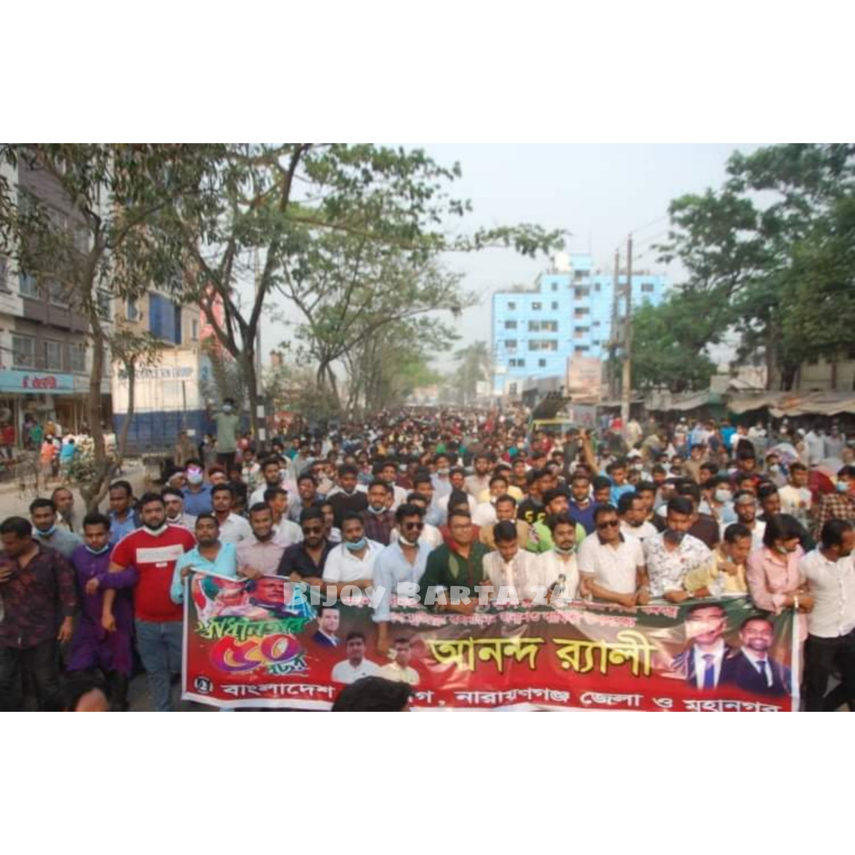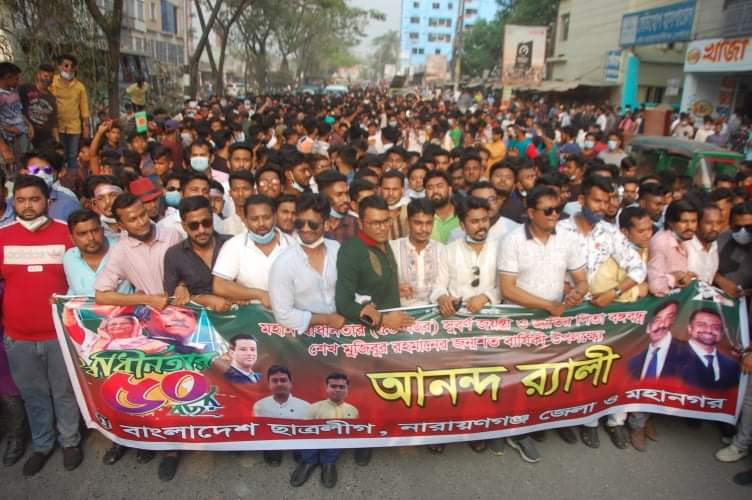 বুধবার বিকেলে যাথাযথ স্বাস্থ্যবিধি মেনে নারায়ণগঞ্জের শহরের বিভিন্ন পয়েন্টে এই আনন্দ র‍্যালীর শোভাযাত্রা করা হয়। এর আগে সদর, ফতুল্লা, বন্দর, সিদ্ধিরগঞ্জ ও সোনারগাও সহ ছাত্রলীগের বিভিন্ন ইউনিটের নেতৃবৃন্দ খন্ড খন্ড মিছিল নিয়ে খানপুর হাসপাতাল রোডে জমায়েত হয়। পরে জেলা ও মহানগর ছাত্রলীগের নেতৃবৃন্দ একত্রিত হয়ে দশ হাজার নেতাকর্মী নিয়ে শহরের চাষাঢ়া থেকে ২ নং রেল গেইট আওয়ামীলীগের অফিস সামনে হয়ে আবার চাষাঢ়া এসে এই আনন্দ র‍্যালী শেষ হয়।