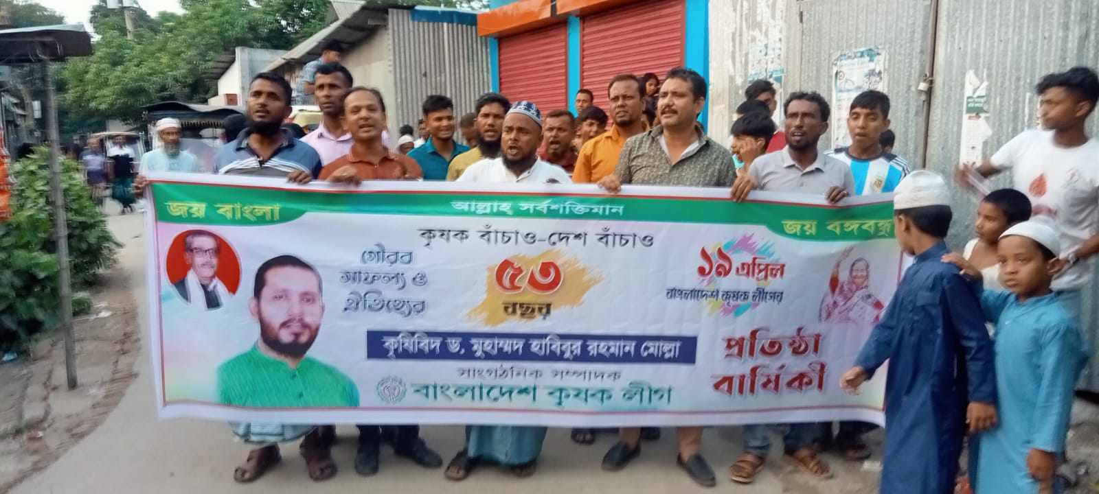 নারায়ণগঞ্জের আড়াইহাজারে কৃষক লীগের প্রতিষ্ঠাবার্ষিকী উপলক্ষে ঝটিকা মিছিল করেছে কৃষকলীগের নেতাকর্মীরা।