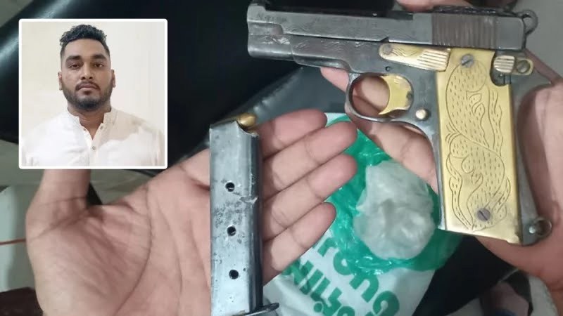 তার দেহ তল্লাশি করে একটি বিদেশি পিস্তল, মেইড ইন ইউএসএ লেখা একটি ম্যাগাজিন ও দুই রাউন্ড গুলি উদ্ধার করে জব্দ করা হয়। ফরহাদ হোসেন ইফতির বিরুদ্ধে এর আগেও মাদকদ্রব্য নিয়ন্ত্রণ আইনে মামলা রয়েছে।