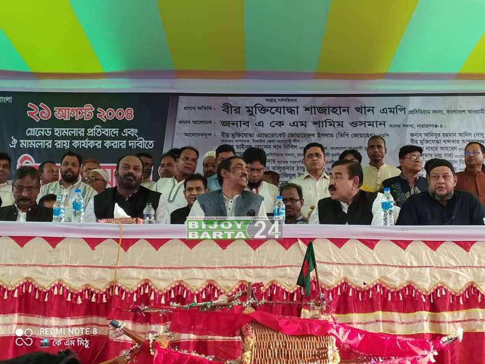 সোমবার (২৯ আগস্ট) বিকালে টাঙ্গাইলের গোপালপুর উপজেলা আওয়ামী লীগের উগ্যোগে ২০০৪ সালের ২১ আগস্ট গ্রেনেড হামলাকারীদের ফাঁসির দাবি দ্রুত কার্যকরের দাবিতে পৌর শহরের সূতী বিএম সরকারি পাইলট উচ্চ বিদ্যালয় মাঠে আয়োজিত অনুষ্ঠানে প্রধান আলোচকের বক্তব্যে নারায়ণগঞ্জ-৪ আসনের সংসদ সদস্য শামীম ওসমান বিএনপিকে উদ্দেশ্য করে এসব কথা বলেন।