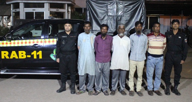 গ্রেপ্তারকৃতরা হলেন, মোঃ কুদ্দুছ মিয়া (৬৫), মোঃ সুমন হাওলাদার (৪০), মোঃ কুদ্দুছ (৪০) আবুল কালাম (৩৬) ও মোঃ ইজ্জত আলী (৬০)।