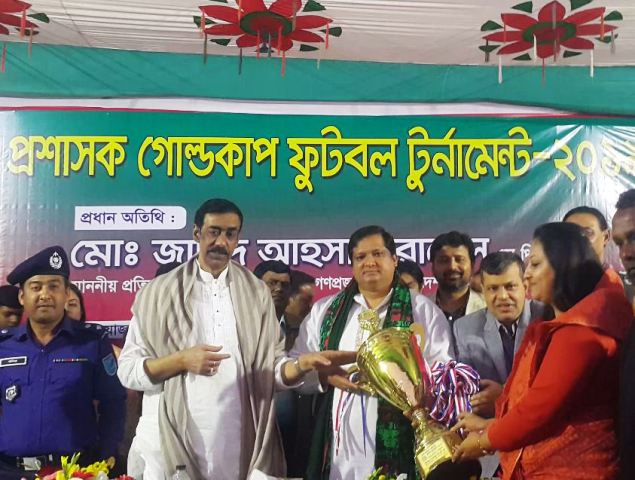 ৩ ডিসেম্বর শুরু হয়ে ১০ ডিসেম্বরে ফাইনাল খেলার মধ্য দিয়ে সমাপ্ত হলো নারায়ণগঞ্জ জেলা প্রশাসক গোল্ডকাপ ফুটবল টুর্নামেন্ট ২০১৯। নীট কনসার্ণ গ্রুপের পৃষ্ঠপোষকতায় ও জেলা ক্রীড়া সংস্থার আয়োজনে ফাইনাল খেলায় প্রধান অতিথি হিসেবে চ্যাম্পিয়ন ও রানার্স আপ দলকে ট্রফি তুলে দেন যুব ও ক্রীড়া প্রতিমন্ত্রী মোঃ জাহিদ আহসান রাসেল এমপি। জেলা প্রশাসক মোঃ জসিম উদ্দিনের সভাপতিত্বে অনুষ্ঠানে সম্মানিত অতিথি হিসেবে উপস্থিত ছিলেন সাংসদ শামীম ওসমান। আরো উপস্থিত ছিলেন, জেলার ভারপ্রাপ্ত পুলিশ সুপার মনিরুল ইসলাম, জেলা ক্রীড়া সংস্থার সাধারণ সম্পাদক তানভীর আহমেদ টিটু, অতি: সা:সম্পাদক ইব্রাহিম চেঙ্গিস সহ প্রশাসন ও ক্রীড়াঙ্গণের গণ্যমান্য ব্যক্তিবর্গ। জেলা ক্রীড়া সংস্থা ও জেলা প্রশাসনের পক্ষ থেকে তাদের ক্রেস্ট ,শুভেচ্ছা উপহার ও উত্ত্বরীয় পড়িয়ে দেওয়া হয়।পুরো মাঠ সাজানো হয় রঙিন পতাকা,বেলুন আর ফুলে। ৫ দলের এ টুর্নামেন্ট ছিল চমকে ভরা। সদর বিদায় নিয়েছে শুরুতেই। আড়াইহাজারের সুযোগ থাকলেও পারেনি ফাইনালে উঠতে। মওকা পেয়েছে বন্দর অধিকতর গোলের সুবাদে ফাইনালে উঠার। শেষ মুহুর্তে সোনারগাঁও বাজিমাত করেও পারেনি। তবে অপেক্ষাকৃত ভাল ও শক্তিশালী রূপগঞ্জ যোগ্য দল হিসেবেই ফাইনালে। কিন্তু তারা বিফল। হেরে গেল তারা ০-২ গোলে। মওকা পাওয়া বন্দর উপজেলা শিরোপাটা ঘরে তুললো যোগ্য দল হিসেবে। তাদের চালর্স চুকা গোল ২টি করেন।