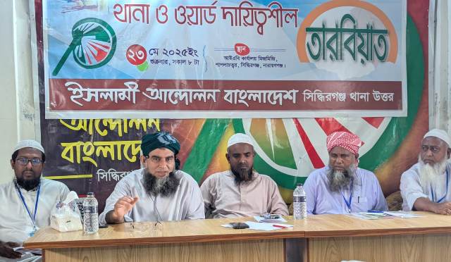 শুক্রবার থানা কার্যালয়ে সকাল ৮টা থেকে ইসলামী আন্দোলন বাংলাদেশ সিদ্ধিরগঞ্জ থানা উত্তর এর ওয়ার্ড ও দায়িত্বশীল তারবিয়াতে প্রধান অতিথির বক্তব্যে তিনি উপরউক্ত কথা বলেন।