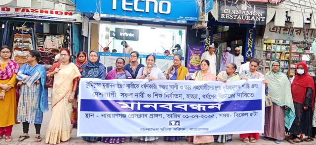 কুমিল্লার মুরাদনগরের নারীকে ধর্ষণকারী ফজর আলী ও তার সহযোগীদের দ্রুত দৃষ্টান্তমূলক শাস্তি এবং দেশব্যাপী সকল নারী ও শিশু নির্যাতন, হত্যা, ধর্ষণের বিচারের দাবিতে বাংলাদেশ মহিলা পরিষদ নারায়ণগঞ্জ জেলা শাখার উদ্যোগে প্রতিবাদ সমাবেশ ও মানববন্ধন অনুষ্ঠিত হয়।