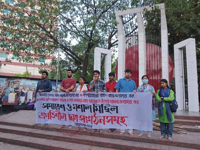 জ্বালানি তেলের বর্ধিত মূল্য ও গণপরিবহনের বর্ধিত ভাড়া প্রত্যাহার এবং ঢাকায় ছাত্র সমাবেশে হামলার অভিযোগে পুলিশের শাস্তির ও নেতৃবৃন্দের নামে দায়েরকৃত মামলা প্রত্যাহার করার দাবিতে প্রগতিশীল ছাত্র সংগঠনসমূহ নারায়ণগঞ্জ জেলার উদ্যোগে আজ সন্ধ্যা ৬টায় নারায়ণগঞ্জ কেন্দ্রীয় শহিদ মিনারে ছাত্র সমাবেশ ও শহরে মশাল মিছিল অনুষ্ঠিত হয়। বাংলাদেশ ছাত্র ইউনিয়ন নারায়ণগঞ্জ জেলা সংসদের সভাপতি ইবনে সানি দেওয়ানের সভাপতিত্বে সমাবেশে বক্তব্য রাখেন সমাজতান্ত্রিক ছাত্র ফ্রন্ট নারায়ণগঞ্জ জেলার সভাপতি মুন্নী সরদার, জেলার সাধারণ সম্পাদক ফয়সাল আহমেদ রাতুল, বাংলাদেশ ছাত্র ইউনিয়ন নারায়ণগঞ্জ জেলা সংসদের সহ-সাধারণ সম্পাদক ইফাত ইমতিয়াজ অয়ন্ত, সমাজতান্ত্রিক ছাত্র ফ্রন্ট নারায়ণগঞ্জ জেলার সাংগঠনিক সম্পাদক সাইফুল ইসলাম, বাংলাদেশ ছাত্র ইউনিয়ন নারায়ণগঞ্জ জেলা সংসদের স্কুল ও ছাত্র বিষয়ক সম্পাদক আবির হুসাইন।