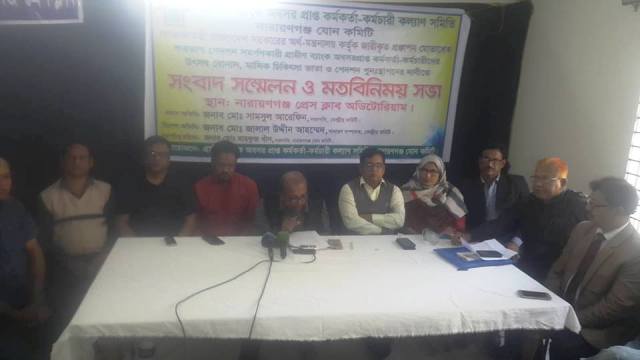 গ্রামীন ব্যাংক অবসর প্রাপ্ত কর্মকর্তা কর্মচারী কল্যান সমিতি নারায়ণগঞ্জ জোন কমিটির সংবাদ সম্মেলন ও মত বিনিময় সভা অনুষ্ঠিত। শুক্রবার সকাল ১১ টায় নারায়ণগঞ্জ প্রেস ক্লাব অডিটোরিয়াম কক্ষে এ সংবাদ সম্মেলন আয়োজন করে।