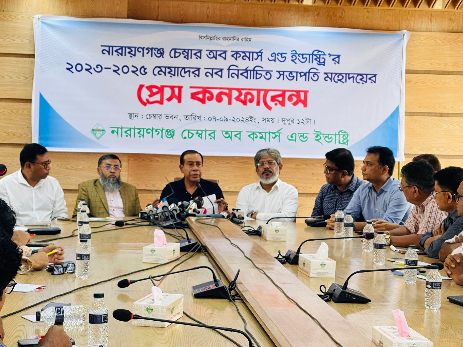 শনিবার (৭ সেপ্টেম্বর) নারায়ণগঞ্জ চেম্বার ভবনের কনফারেন্স রুমে সাংবাদিকদের সাথে আয়োজিত এক সংবাদ সম্মেলনে তিনি এ কথা বলেন।