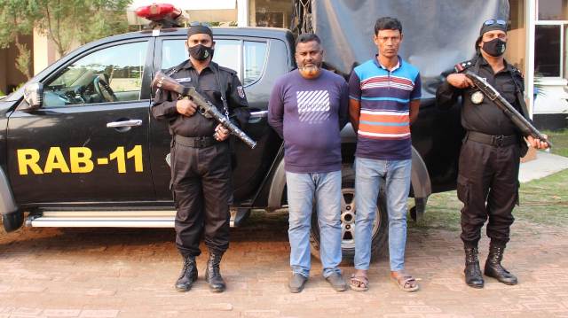 শহরের চাষাঢ়া এলাকা থেকে চাঁদাবাজ চক্রের ২ সদস্যকে গ্রেফতার করেছে র‌্যাব-১১।