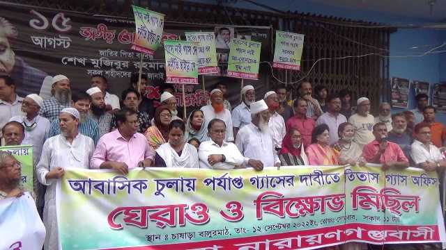 তিতাস গ্যাস অফিস ঘেরাও করে অবস্থান নেওয়া ভূক্তভোগীরা বলেন, নারায়ণগঞ্জ শহর ও শহরতলী এলাকায় আবাসিক চুলায় ধারাবাহিক গ্যাস সংকটের কারনে বিগত ২০১৩-১৫ সালে ০৩ (তিন) বৎসর ব্যাপী ‘আমরা নারায়ণগঞ্জবাসী’ সংগঠনের দীর্ঘ আন্দোলন ও তিতাস গ্যাস ব্যবস্থাপনা পরিচালক এর সাথে দফায় দফায় বৈঠকে আমাদেরকে বলেছিল চাষাড়া থেকে নিতাইগঞ্জ পর্যন্ত ৬ ইঞ্চি নতুন গ্যাস পাইপ লাইন সংযুক্ত করা হবে। কিন্তু তা আজ অবধি করা হয়নি।