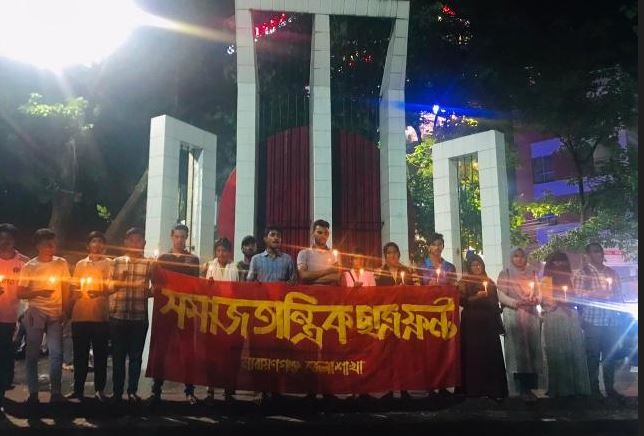 সমাজতান্ত্রিক ছাত্র ফ্রন্ট নারায়ণগঞ্জ জেলার পক্ষ থেকে বুধবার সন্ধ্যা ৭ টায় বৈষম্যবিরোধী ছাত্র আন্দোলনের শহীদের স্মরণে ও জুলাই’২৪ ছাত্র জনতার গণঅভ্যুত্থানের ১ মাস পূর্ণ হওয়ায় চাষাড়া কেন্দ্রিয় শহীদ মিনারে মোমবাতি প্রজ্জলন করা হয়। সমাজতান্ত্রিক ছাত্র ফ্রন্ট নারায়ণগঞ্জ জেলার আহŸায়ক সাইফুল ইসলামের সভাপতিত্বে উপস্থিত ছিলেন সমাজতান্ত্রিক ছাত্র ফ্রন্ট নারায়ণগঞ্জ জেলার সাবেক সাধারন সম্পাদক ফয়সাল আহম্মেদ রাতুল, সমাজতান্ত্রিক ছাত্র ফ্রন্ট নারায়ণগঞ্জ জেলার সংগঠক আদ্রি মাহি, তাহসান ইসলাম, সিফা প্রমুখ। বক্তারা বলেন, বাংলাদেশের জাতীয় সংগীতকে স্বাধীনতার অস্তিত্বের পরিপন্থি আখ্যা দিয়ে তা পরিবর্তনের দাবী জানিয়েছে তার তীব্র নিন্দা জানায় সমাজতান্ত্রিক ছাত্র ফ্রন্ট নারায়ণগঞ্জ জেলার নেতৃবৃন্দ। ৩০ লক্ষ মানুষের প্রানের চেতনা ধারন করে এই জাতীয় সংগীত। অভিলম্বে জামাত ইসলামীর সাবেক আমির গোলাম আযমের ছেলে আব্দুল্লাহিল আমান আযমীসহ যারা জাতীয় সংগীত নিয়ে উস্কানীমূলক বক্তব্য ধারন করে তাদের সকলের বিরুদ্ধে আইনী ব্যবস্থার দাবী জানান। জুলাই’২৪ এর ছাত্র জনতার গণঅভ্যুত্থানে সকল ছাত্র হত্যার দ্রæত বিচার, নিহত ও আহতদের তালিকা প্রকাশ, রাষ্ট্রীয় উদ্যোগে সকল পরিবার যথাযথ ক্ষতিপূরন ও আহতদের সুচিকিৎসা নিশ্চিত করতে হবে।