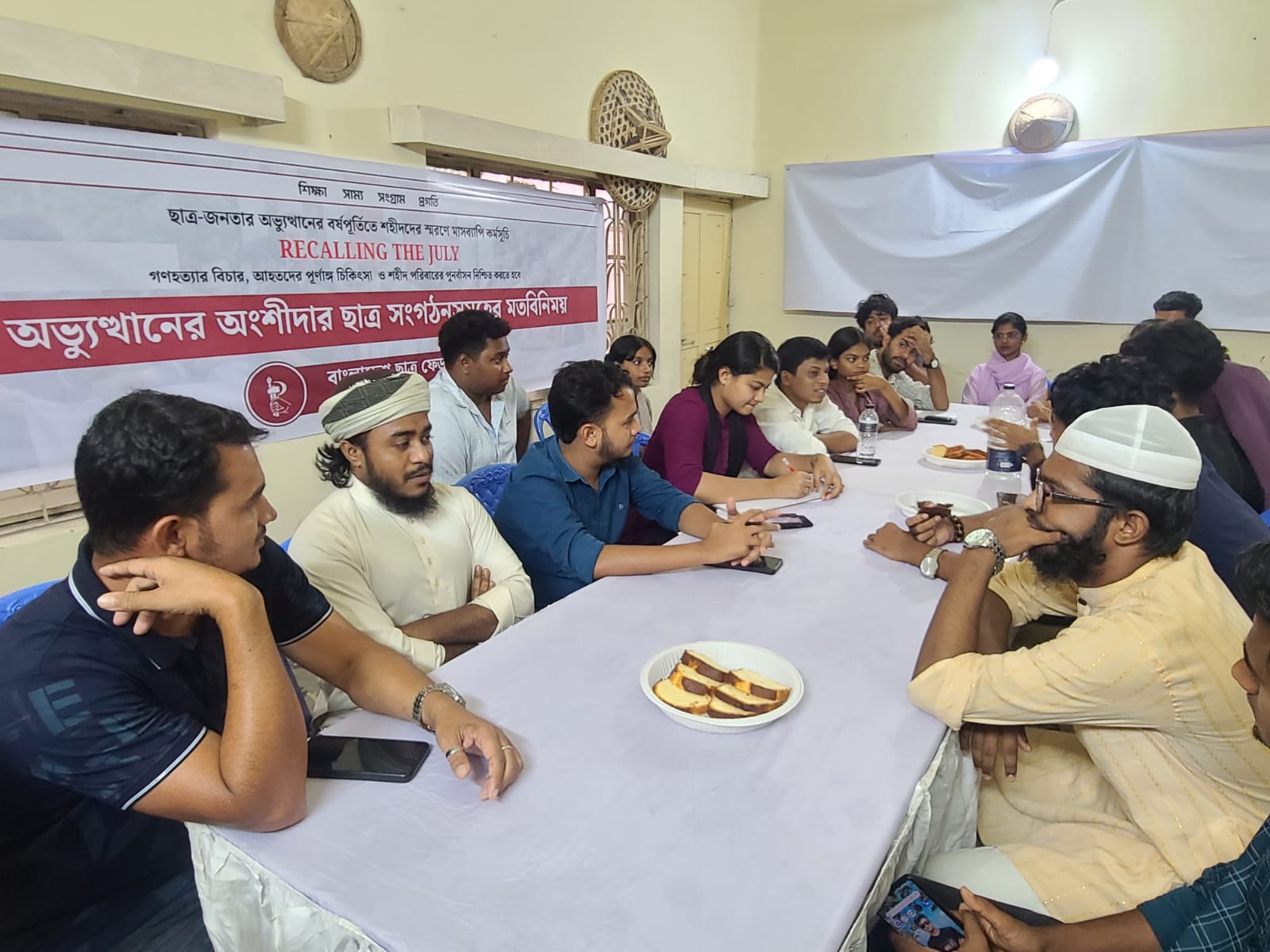 আজ সোমবার বিকেলে বাংলাদেশ ছাত্র ফেডারেশন এর আয়োজনে গণঅভ্যুত্থানের অংশীদার ছাত্র সংগঠনসমূহের সাথে মতবিনিময় অনুষ্ঠিত হয়। মতবিনিময় সভা ছাত্র ফেডারেশন নারায়ণগঞ্জ জেলার কার্যালয়ে অনুষ্ঠিত হয়। শহীদদের স্মরণে নীরবতা পালনের মধ্যে দিয়ে মতবিনিময় সভা শুরু হয়।