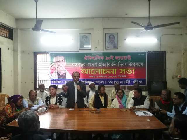 আলোচনা সভার পূর্বে বঙ্গবন্ধুর স্বদেশ প্রত্যাবর্তন দিবস উপলক্ষে জেলা আওয়ামী লীগের নেতৃবৃন্দরা বঙ্গবন্ধুর প্রতিকৃতিতে শ্রদ্ধা নিবেদন করেন ।