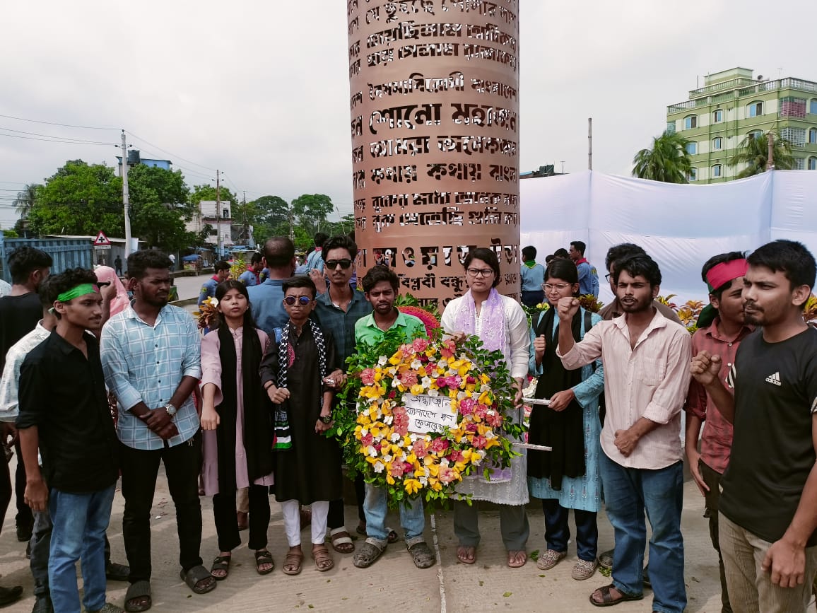 ছাত্র-জনতার জুলাই অভ্যুত্থানের প্রথম বর্ষপূর্তিতে জুলাই গণঅভ্যুত্থান দিবস উপলক্ষে আজ ৫ আগস্ট ২০২৫, শহীদদের স্মরণে নারায়ণগঞ্জের জুলাই স্মৃতিস্তম্ভে শ্রদ্ধাঞ্জলি নিবেদন করেছে বাংলাদেশ ছাত্র ফেডারেশন, নারায়ণগঞ্জ জেলা।