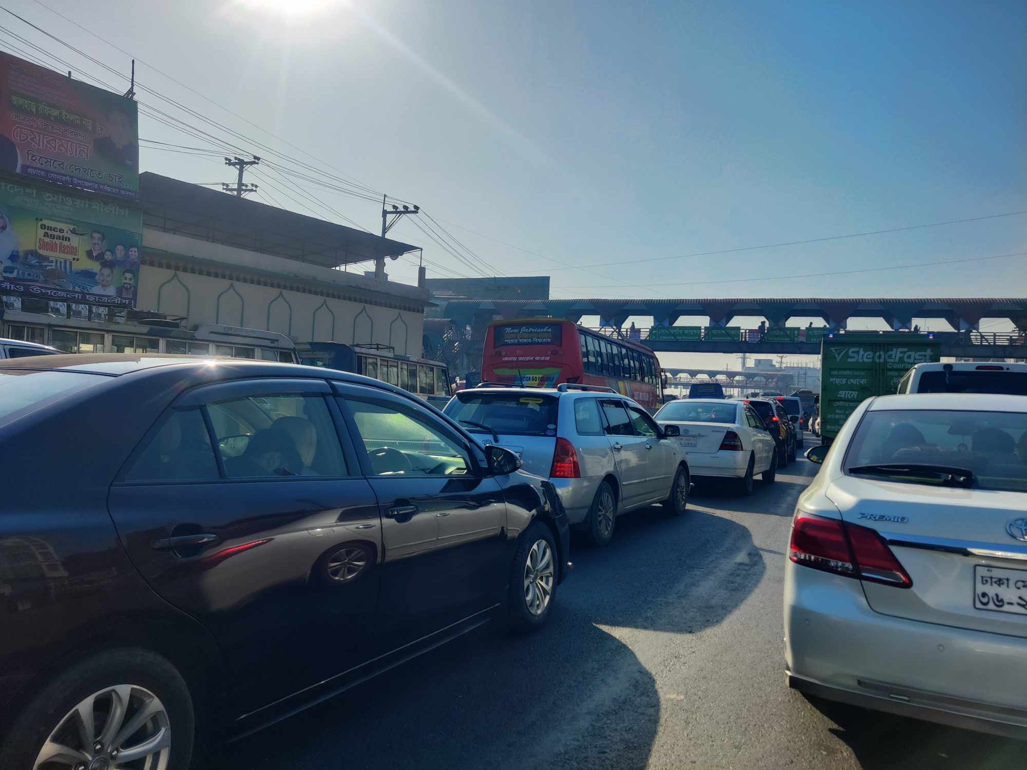 নারায়ণগঞ্জের ঢাকা-চট্টগ্রাম মহাসড়কের অংশে ৫ কিলোমিটার এলাকা জুড়ে তীব্র যানজটের সৃষ্টি হয়েছে। শুক্রবার ছুটির দিনও যার ফলে দুর্ভোগে পড়েছেন মহাসড়কের যাত্রীরা। শুক্রবার (৮ মার্চ) সকালে ঢাকা-চট্টগ্রাম পুরো মহাসড়ক জুড়ে এই চিত্র সরজমিনে দেখা যায়।