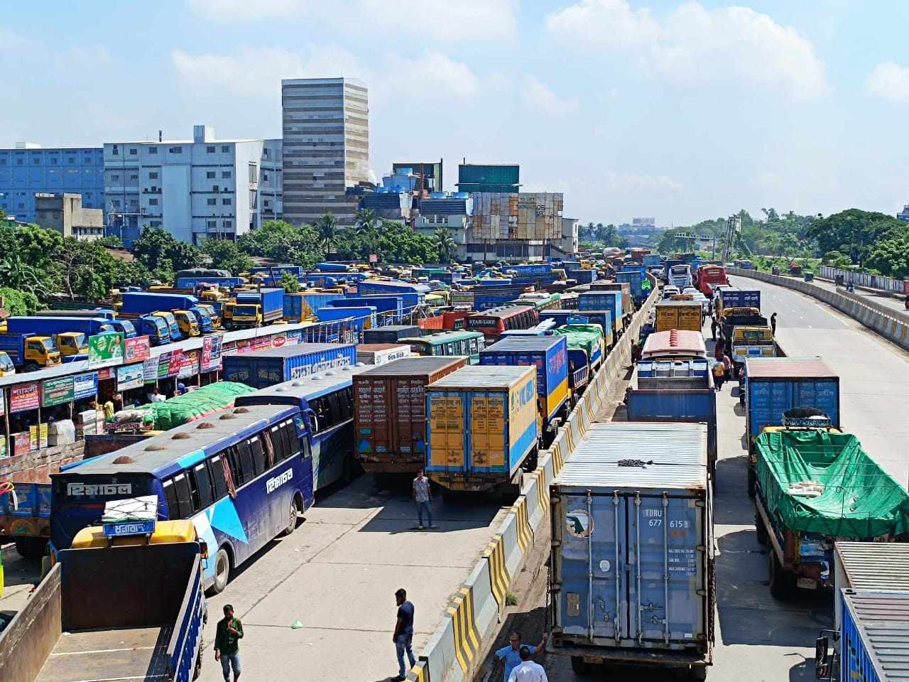 শুক্রবার সকালে সরেজমিনে গিয়ে দেখা গেছে অনেকেই যানজটের কারণে হেঁটে ও ছোট ছোট যানে গন্তব্যে যাচ্ছেন বিকল্প রাস্তায়।