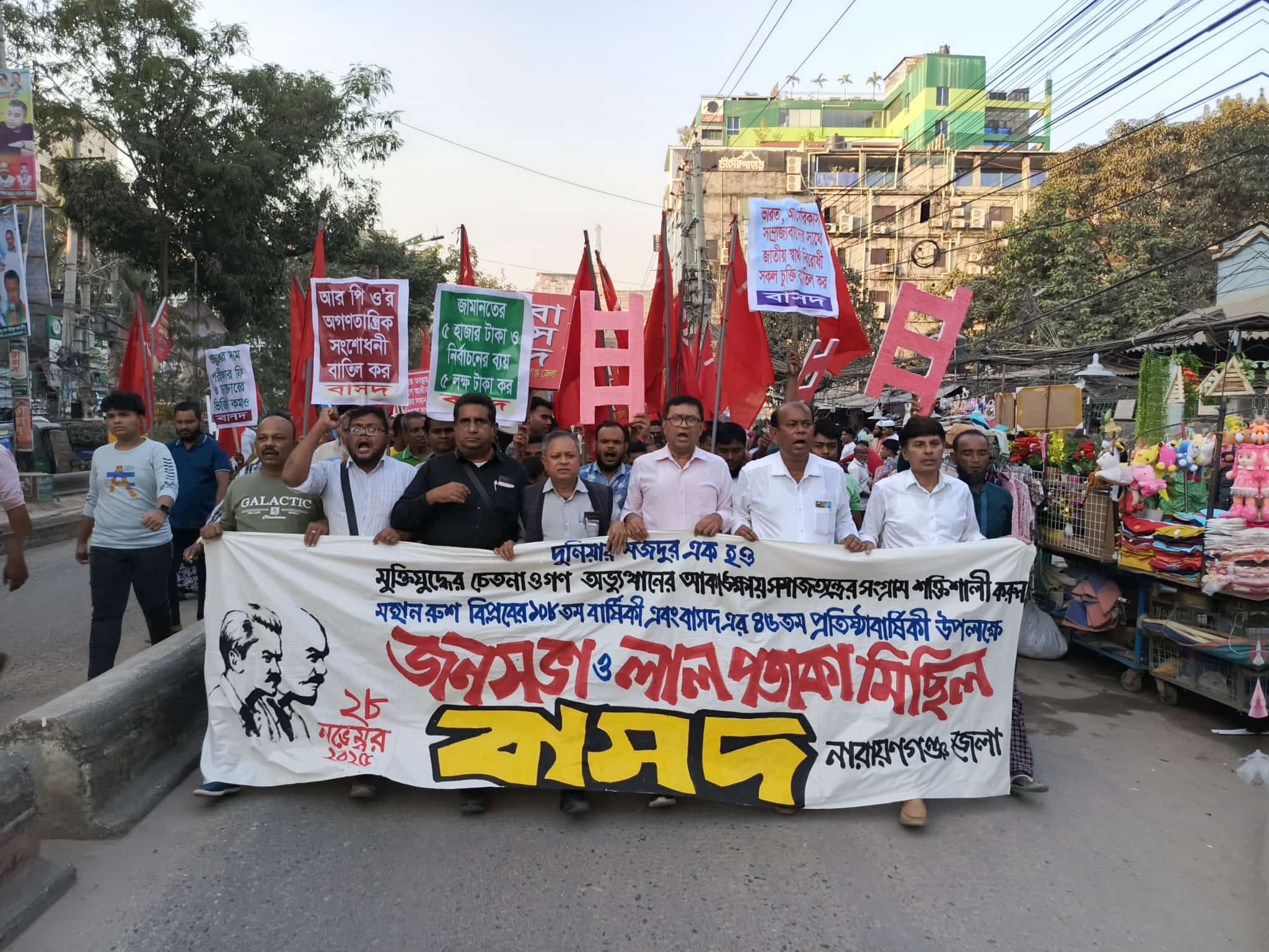 বাসদের ৪৫ তম প্রতিষ্ঠাবার্ষিকী ও মহান রশ বিপ্লবের ১০৮ তম বার্ষিকী উপলক্ষে বাংলাদেশের সমাজতান্ত্রিক দল বাসদ নারায়ণগঞ্জ জেলা শাখার উদ্যোগে শুক্রবার