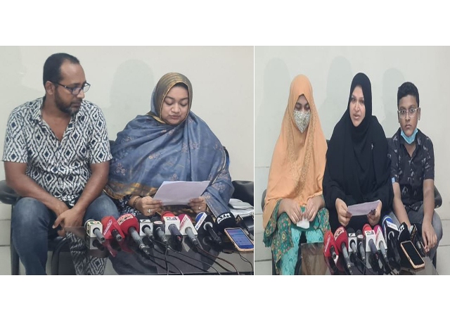 ত্বকী হত্যা মামলায় গত দুদিনে র্যাবের হাতে আটক সাফায়েত হোসেন শিপন ও মামুনের পরিবার আটকৃতদের নির্দোষ দাবী করে সংবাদ সম্মেলন করেছে। বুধবার বিকেলে নারায়ণগঞ্জ প্রেসক্লাবে পরিবার দুটি পৃথক সংবাদ সম্মেলনের আয়োজন করেন।