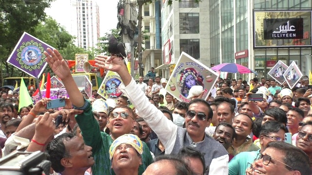 নারায়ণগঞ্জ জেলা ও মহানগর পূজা উদযাপন পরিষদ এই শোভাযাত্রার আয়োজন করে।