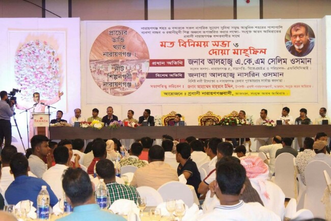 রোববার ২১ অক্টোবর রাত ৮টায় আজমান শহরে রামাদা হোটেলের ম্যাজিস্টিক হল রুমে নারায়ণগঞ্জ ও বন্দরে সকল নাগরিক সুযোগ সমৃদ্ধ আধুনিক ও ব্যবসা বান্ধব শহর এবং রপ্তানিমুখী শিল্প অঞ্চলে রূপান্তরিত করার লক্ষ্যে প্রবাসী নারায়ণগঞ্জবাসী সংগঠনের উদ্যোগে আয়োজিত মতবিনিময় সভায় প্রধান অতিথির বক্তব্যে তিনি একথা বলেন।