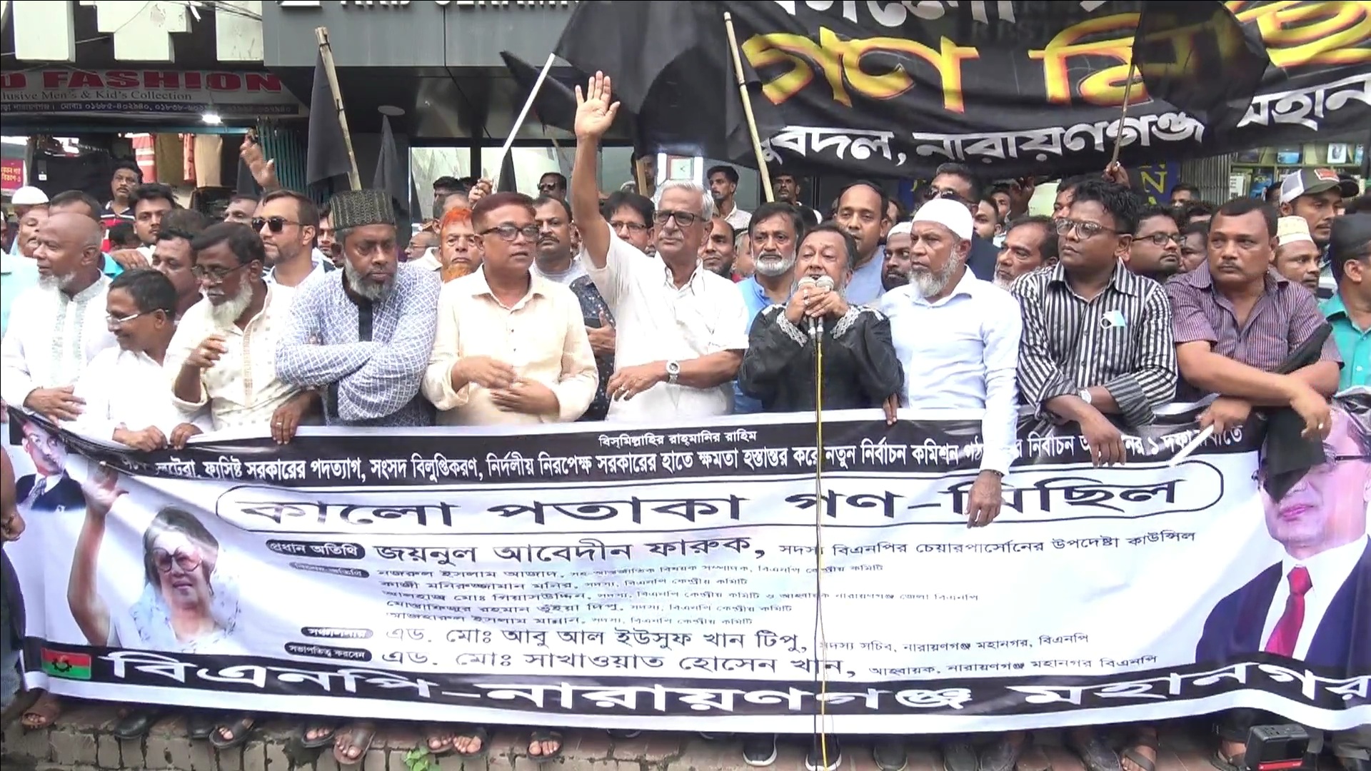 নারায়ণগঞ্জ মহানগর বিএনপির আহ্বায়ক এডভোকেট শাখাওয়াত হোসেন খানের সভাপতিত্বে ও সদস্য সচিব অ্যাডভোকেট আবু আল ইউসুফ খান টিপুর সঞ্চালনায় কালো পতাকা মিছিলের আগে সংক্ষিপ্ত সমাবেশে মহানগর বিএনপির স্থানীয় নেতৃবৃন্দ বক্তব্য রাখেন। পরে একটি বিক্ষোভ মিছিল নারায়ণগঞ্জ প্রেস ক্লাব থেকে শহরের ২নং রেল গেইট এলাকায় আওয়ামী লীগের দলীয় কার্যালয়ের সামনে যেয়ে শেষ হয়।