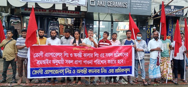 নারায়ণগঞ্জের ফতুল্লার ক্রোণী এ্যাপারেলস্ লিমিটেড ও অবন্তী কালার লিমিটেড এর শ্রমিক-কর্মচারীরা বকেয়া বেতনের দাবীতে প্রতিবাদ সমাবেশ ও মানববন্ধন করেন।