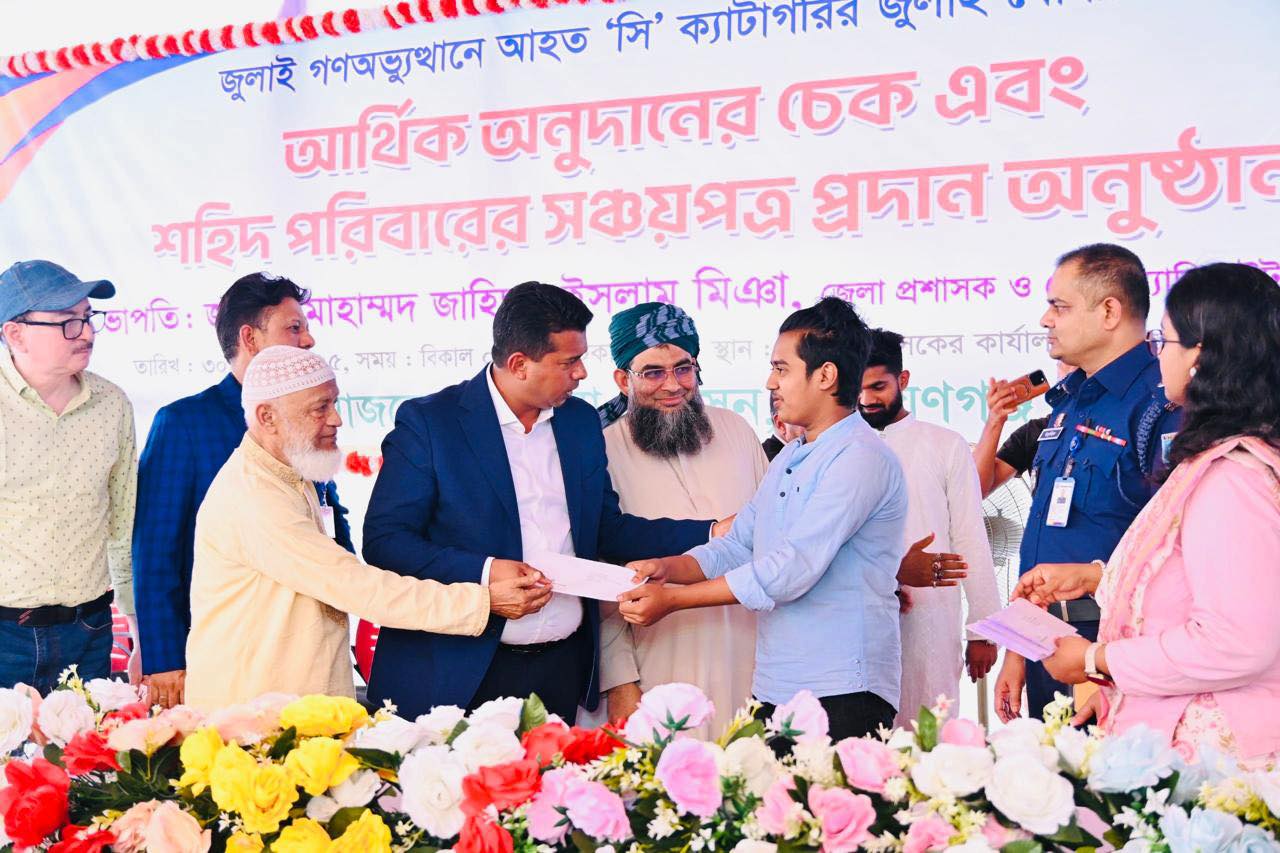 জুলাই গণঅভ্যুত্থানে আহত ও নিহত শহীদ পরিবারের সদস্যদের মাঝে আর্থিক অনুদানের চেক সঞ্চয়পত্র বিতরণ করা হয়েছে । বুধবার বিকেলে নারায়ণগঞ্জ জেলা প্রশাসকের কার্যালয় প্রাঙ্গণে জুলাই গণঅভ্যুত্থানে আহত ‘সি’ ক্যাটাগরির যোদ্ধাদের আর্থিক অনুদানের চেক এবং শহিদ পরিবারের সদস্যদের মাঝে মুক্তিযুদ্ধ মন্ত্রণালয় প্রদত্ত আর্থিক অনুদানের চেক ও সঞ্চয়পত্র বিতরণ করা হয়।