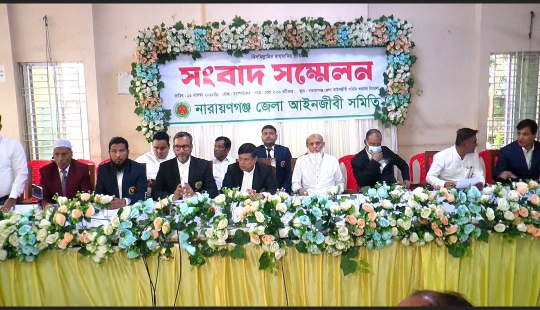 নারায়ণগঞ্জের পুরনো বার ভবনের জমি উদ্ধারের দাবিতে সংবাদ সম্মেলন করেছে জেলা আইনজীবী সমিতি। বৃহষ্পতিবার বিকেলে নতুন কোর্ট এলাকায় জেলা আইনজীবী সমিতির কার্যালয়ে এ সংবাদ সম্মেলনের আয়োজন করা হয়। এসময় বক্তব্য রাখেন জেলা আইনজীবী সমিতির সভাপতি এড.সরকার হুমায়ন কবির, সাধারণ সম্পাদক এড. এইচ এম আনোয়ার প্রধান, পাবলিক প্রসিকিউটর (পিপি) এড. আবুল কালাম আজাদ। এসময় সমিতির অন্যান্য আইনজীবীরাও উপস্থিত ছিলেন।