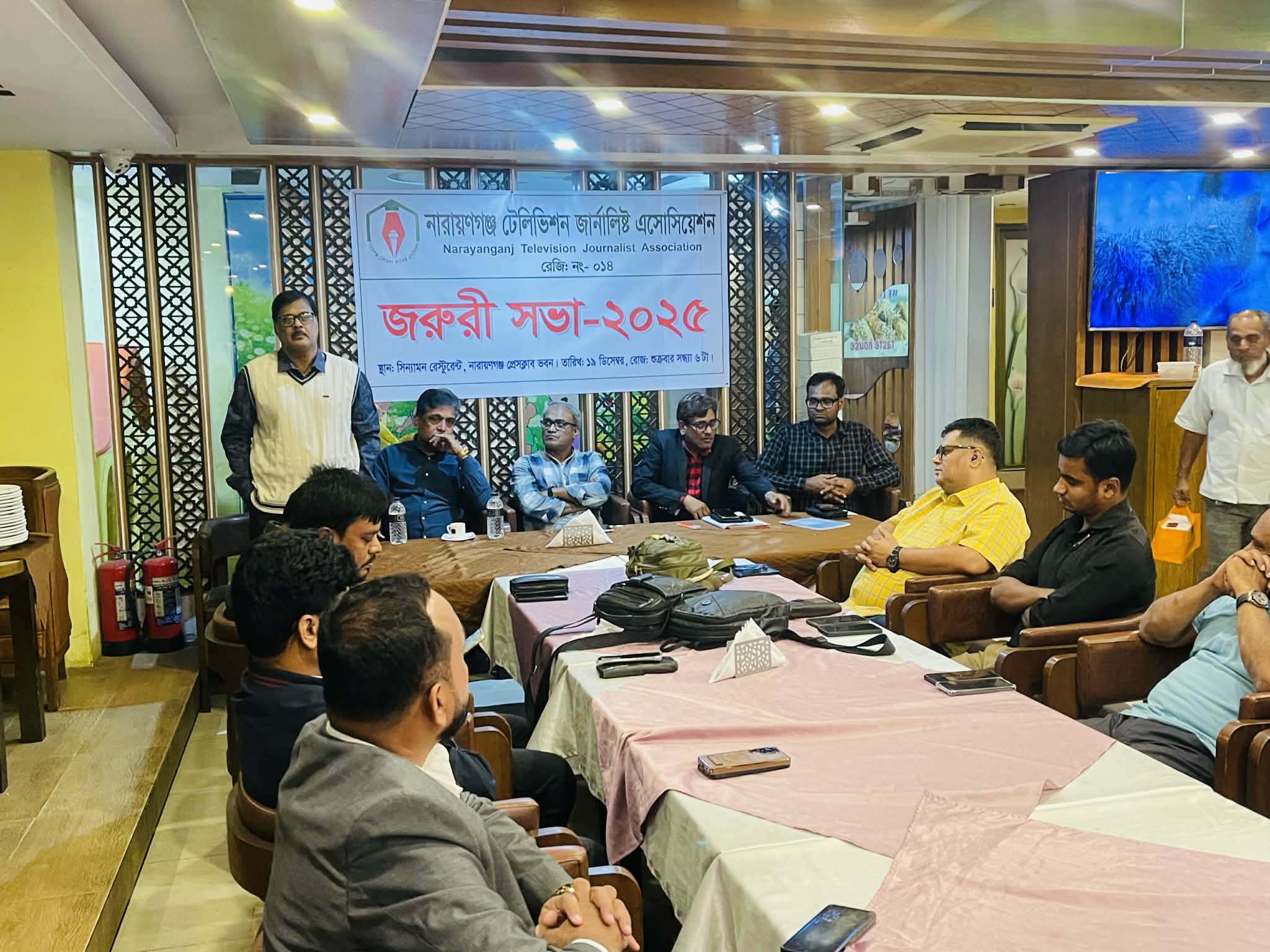 নারায়ণগঞ্জ টেলিভিশন জার্নালিস্ট এসোসিয়েশনের জরুরি এ সভায় দেশের বর্তমান পরিস্থিতিতে পেশাদার সাংবাদিকতার মান বজায় রাখা, সাংবাদিকদের নিরাপত্তায় করণীয়, নতুন সদস্য অন্তর্ভুক্তকরণ ও সংগঠনের পরবর্তী কার্যক্রম গতিশীল করাসহ সদস্যদের মতামত গ্রহণের মাধ্যমে নানা বিষয় নিযে আলোচনা করা হয়।