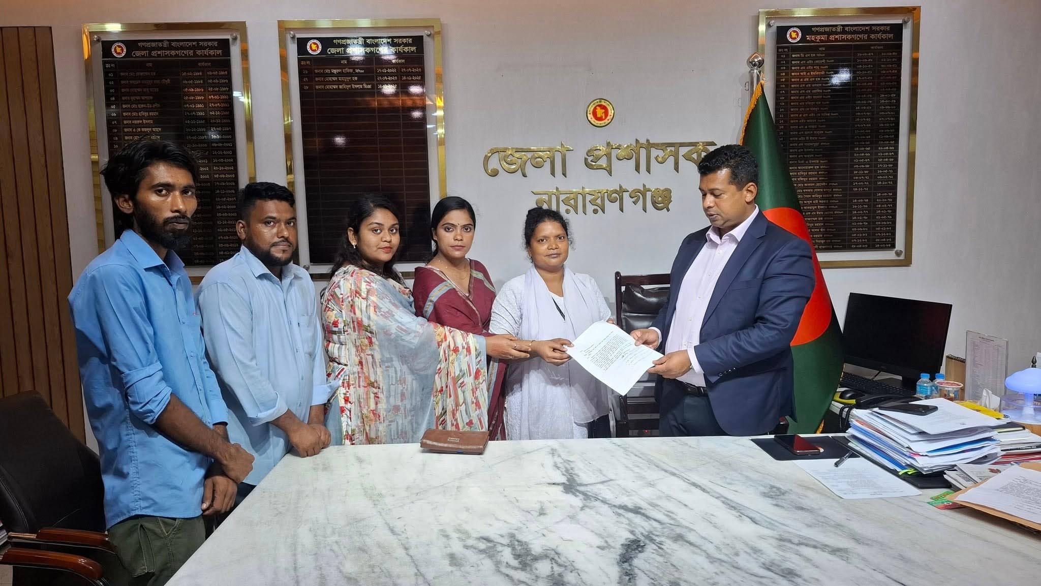 বৃহষ্পতিবার বিকাল ৩টায় নারায়ণগঞ্জ বন্দর থানার সংসদীয় আসন বন্টন বাতিল করার দাবিতে নারায়ণগঞ্জ জেলা প্রশাসকের কার্যালয় বন্দরবাসীর পক্ষ থেকে স্মারকলিপি প্রদান করা হয়। স্মারক লিপি প্রদান অনুষ্ঠানে উপস্থিত ছিলেন সমাজতান্ত্রিক ছাত্রফ্রন্টের সাবেক সভাপতি এবং বাসদ বন্দর উপজেলার অন্যতম সংগঠক মুন্নি সরদার, গণঅধিকার পরিষদ নারায়ণগঞ্জ জেলা কমিটির সহ-সভাপতি মেহবুবা আক্তার, জামিয়া গাউছিয়া তৈয়বিয়া তাহেরিয়া মাদ্রাসার সিনিয়র সহকারী শিক্ষক মোঃ আকরাম হোসেন, ভয়েস অফ বন্দর এর সদস্য মেহেদী হাসান মুন্না, সদস্য সাহেল হোসেন নজরুল পাঠাগারের আহ্বায়ক ফাতেমা আক্তার মুক্তা, সাদিয়া প্রধান ও নুরুজ্জামান। নির্বাচন কমিশনের পক্ষ থেকে নারায়ণগঞ্জ এর পুনঃনির্ধারিত পঁাচটি সংসদীয় আসন নতুন করে বন্টন করার ঘোষনা দেয়া হয়। নির্বাচন কমিশনের ঘোষনা অনুযায়ী নারায়ণগঞ্জ সিটি কর্পোরেশনের ২৭ ওয়ার্ড নারায়ণগঞ্জ ৫ আসন হলে বন্দর উপজেলার অর্ধেক অংশ ৩ আসন ও বাকী অংশ ৫ আসনে সদর উপজেলায় পড়ে যায়। এতে করে বন্দরবাসীর স্বাভাবিক কার্যক্রমে ব্যাঘাত ঘটবে। এতে বন্দরবাসী উক্ত বিষয়টি নিয়ে ক্ষোভ প্রকাশ করে। তাই আমরা বন্দরবাসী এলাকাবাসীর পক্ষ থেকে সংসদীয় এলাকা বন্টন পূর্বের নিয়মে রাখার জোর দাবি জানাই।