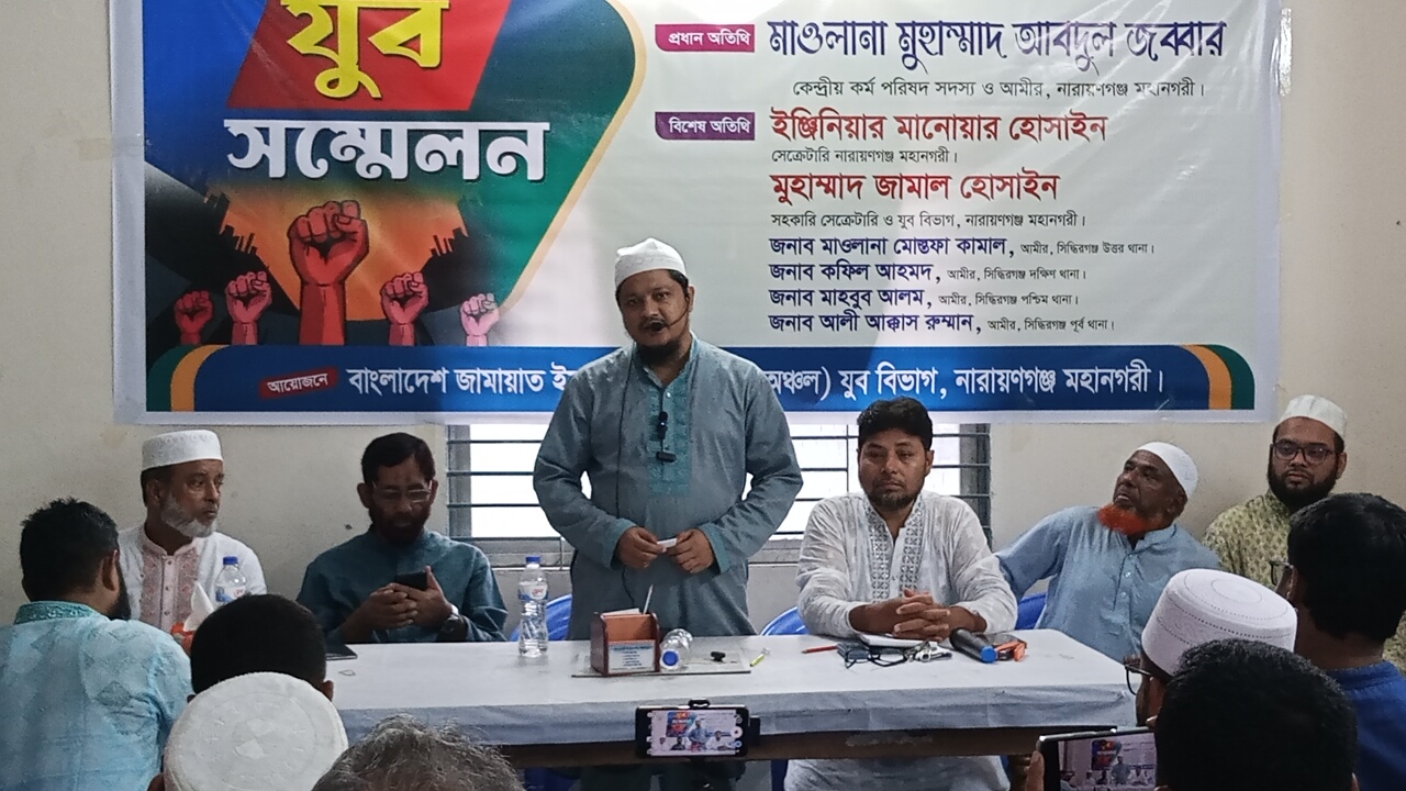 ২২ আগষ্ট (শুক্রবার) বিকালে সিদ্ধিরগঞ্জ চিটাগাং রোড এলাকায় অনুষ্ঠিত যুব সম্মেলনে প্রধান অতিথি ছিলেন জামায়াতে ইসলামী কেন্দ্রীয় কর্ম পরিষদ সদস্য ও নারায়ণগঞ্জ মহানগরী আমীর মাওলানা মুহাম্মদ আবদুল জব্বার। প্রধান অতিথির বক্তব্যে তিনি বলেন, গণমানুষের কল্যাণের জন্য যদি আপনারা পৌঁছাতে চান, আল্লাহর জমিনে আল্লাহর আইনকে যদি দেখতে চান,তাহলে যুবকদের শক্তিকে কাজে লাগাতে হবে ।