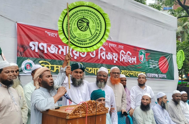 আজ ৫ আগস্ট বেলা ১২ টায় চাষাড়া শহীদ মিনারে ইসলামী আন্দোলন বাংলাদেশ নারায়ণগঞ্জ মহানগরের উদ্যোগে জুলাই অভ্যুত্থান স্মরণে বিজয় মিছিল পূর্বক গণজমায়েতে তিনি এ ঘোষণা দেন।