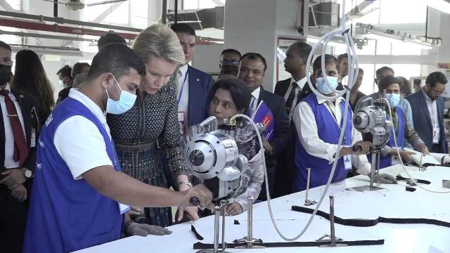 রানী ম্যাথিন্ডে ফকির এ্যাপারেলস এর করপোরেট ভবন, প্রোডাকশন হাউজ, ডে-কেয়ার সেন্টারসহ বিভিন্ন অংশ ঘুরে দেখেন। প্রোডাকশন হাউজে তাকে প্রতিষ্ঠানের তৈরী টি-শার্ট উপহার দেন প্রতিষ্ঠানের শ্রমিক কলি বেগম ও মোহসিনা। দো-ভাষির মাধ্যমে তাদের সাথে কথা বলেন রানী ম্যাথিল্ডে।