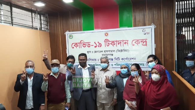 সারা দেশের মত নারায়ণগঞ্জে একযোগে দুটি সরকারী হাসপাতাল সহ চারটি উপজেলা স্বাস্থ্য কমপ্লেক্সে করোনা ভ্যাকসিন টিকা প্রদান শুরু হয়েছে। আজ সকাল সাড়ে দশটায় শহরে নারায়ণগঞ্জ জেনারেল ( ভিক্টোরিয়া) হাসপাতালে জেলা সিভিল সার্জন ইমতিয়াজ আহমেদ প্রথম করোনা ভ্যাকসিন টিকা গ্রহন করে এ কার্যক্রম শুরু করেন। এর পর থেকেই জেলার ৬টি কেন্দ্রে ২৪টি বুথে টিকাদন কার্যক্রম শুরু হয়। করোনা ভ্যাকসিন টিকা প্রদান কার্যক্রম উদ্বোধনের সময় উপস্থিথ ছিলেন, নারায়ণগঞ্জ জেলা সিভিল সার্জন ইমতিয়াজ আহমেদ, নারায়ণগঞ্জ সিটি কর্পোরেশনের প্রধান নির্বাহী আবুল আমিন, নারায়ণগঞ্জ জেনারেল ভিক্টোরিয়া হাসপালের আবাসিক মেডিকেল অফিসার আসাদুজ্জামান সহ