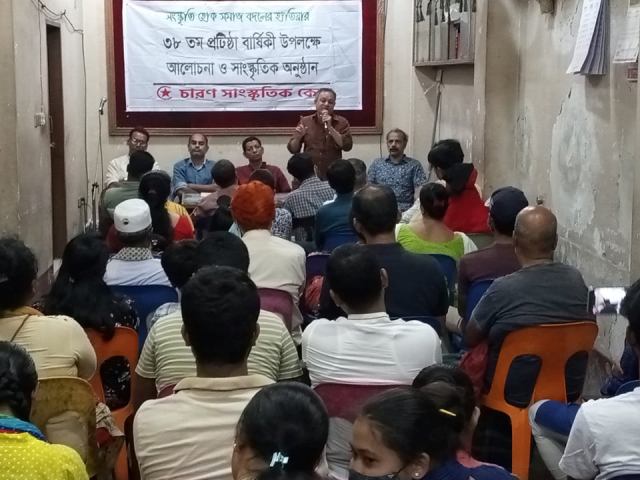 চারণ সাংস্কৃতিক কেন্দ্র নারায়ণগঞ্জ জেলা শাখার উদ্যোগে আজ বিকাল ৫:৩০ টায় ২ নং রেলগেটস্থ সংগঠনের কার্যালয়ে আলোচনাসভা অনুষ্ঠিত হয়। সংগঠনের জেলা আহŸায়ক প্রদীপ সরকারের সভাপতিত্বে সভায় বক্তব্য রাখেন বাসদ নারায়ণগঞ্জ জেলার আহŸায়ক ও চারণ সাংস্কৃতিক কেন্দ্রের কেন্দ্রীয় কমিটির সভাপতি নিখিল দাস, চারণের কেন্দ্রীয় সাধারণ সম্পাদক জাকির হোসেন, জেলার সদস্য সচিব জামাল হোসেন, সদস্য সেলিম আলাদীন প্রমুখ।