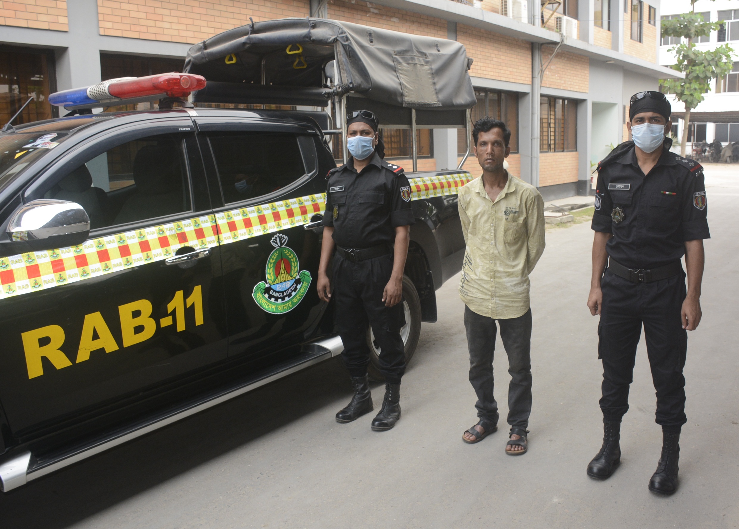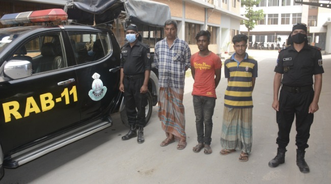 পৃথক অপর একটি অভিযানে সকাল ৯ টায় নারায়ণগঞ্জ জেলার সোনারগাঁ থানাধীন ঢাকা-চট্টগ্রাম মহাসড়কের মোগড়াপাড়া চৌরাস্তা এলাকায় গোপন সূত্রে প্রাপ্ত তথ্যের ভিত্তিতে পরিচালিত র্যাব-১১ এর চেকপোস্টে চট্টগ্রাম হতে নারায়ণগঞ্জগামী পণ্য বোঝাইকৃত সন্দিগ্ধ একটি ট্রাকে তল্লাশী করে ১১ কেজি ৩০০ গ্রাম গাঁজা উদ্ধারসহ ০৩ জন মাদক ব্যবসায়ী’কে গ্রেফতার করা হয়। গ্রেফতারকৃতরা হলোঃ ১। মোঃ সেলিম (৪০), ২। মোঃ লাদেন (২০) ও ৩। মোঃ নেজাম (২০)। আসামী মোঃ সেলিম (৪০) চট্টগ্রাম জেলার হালিশহর থানাধীন উত্তর হালিশহর এলাকার মৃত আবুল হাসেম এর ছেলে, মোঃ লাদেন (২০) কিশোরগঞ্জ জেলার নিকলি থানাধীন ছাতিরচর এলাকার মৃত আশ্রাফ আলীর ছেলে এবং অপর আসামী মোঃ নেজাম (২০) চট্টগ্রাম জেলার সদরঘাট থানাধীন মাদারবাড়ী এলাকার কালুর ছেলে। উক্ত অভিযানে মাদক ব্যবসার কাজে ব্যবহৃত ট্রাকটিও জব্দ করা হয়।
