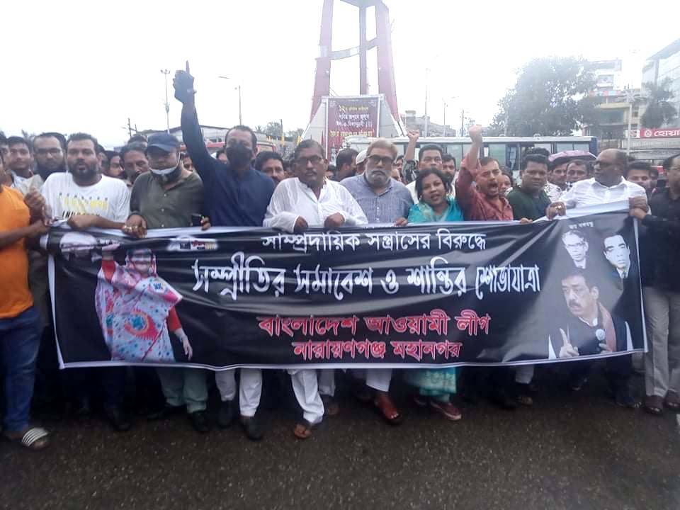 নারায়ণগঞ্জে মহানগর আওয়ামীলীগের উদ্যোগে সাম্প্রদায়িক সন্ত্রাসের বিরুদ্ধে সম্প্রীতির সমাবেশ ও শান্তির শোভাযাত্রা করা হয়।