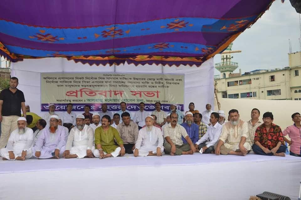 নিখোঁজ দেড় বছরের শিশু সাদমান সাকিকে উদ্ধারের জন্য প্রশাসনের নিকট জোড় দাবী জানিয়ে এবং নিখোঁজ সাকিকে নিয়ে পিতা এপনের দ্বারা সমাজের গণ্যমান্য ব্যাক্তি ও নিরীহ,নিরপরাধ ভাল মানুষদের ষড়যন্ত্রমূলকভাবে মিথ্যা অভিযোগে হয়রানি বন্ধের দাবিতে প্রতিবাদ সভা অনুষ্ঠিত হয়েছে।