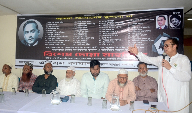 শুক্রবার ২২ আগষ্ট শহরের মিশনপাড়ায় সোনারগাঁও ভবনে বিএনপির অর্ধশতাধিক প্রয়াত এবং জুলাইয়ে নিহতদের মাগফিরাত ও আহতদের রোগমুক্তি কামনায় নারায়ণগঞ্জ মহানগর বিএনপি সাবেক সাধারণ সম্পাদক এটিএম কামালের আয়োজনে দোয়া ও মিলাদ মাহফিলে তিনি একথা বলেন। অনুষ্ঠানে প্রধান অতিথি ছিলেন দুই চোখ হারানো জুলাই যোদ্ধা মাহবুব আলম, বিশেষ অতিথি জামায়াতে ইসলামীর কেন্দ্রীয় শূরা সদস্য মাওলানা মাঈনুদ্দিন আহম্মেদ, ক্রিড়া সংগঠন জাহাঙ্গীর কবির পোকন, নারায়ণগঞ্জ মহানগর বিএনপির সাবেক সমাজ বিষয়ক সম্পাদক মনির হোসেন সরদার, রাজনীতিবীদ মাওলানা আব্দুল কাইয়ূম, বিএনপি নেতা ইসমাঈল মাষ্টার, সমাজ সেবক জাহিদ আহম্মেদ, সাবেক ছাত্রদল নেতা ইফতেখার কায়েস রোমেল, বিএনপি নেতা শাহরিয়ার চৌধুরী ইমন, বাগে জান্নাত মসজিদ মাদ্রাসার অধ্যক্ষ মাওলানা আব্দুর রহিম উপস্থিত ছিলেন।