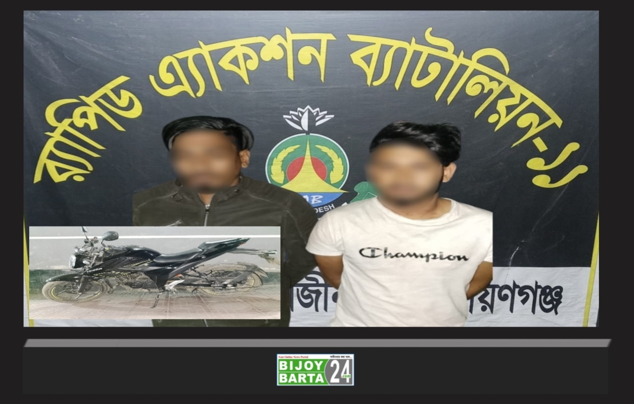 নারায়ণগঞ্জের পূর্বাচলে অস্ত্রের মুখে বাইক ডাকাতচক্রের মূলহোতা তৈয়বুর ও রানাকে গ্রেফতার করেছে র্যাপিড এ্যাকশন ব্যাটালিয়ন (র্যাব)।