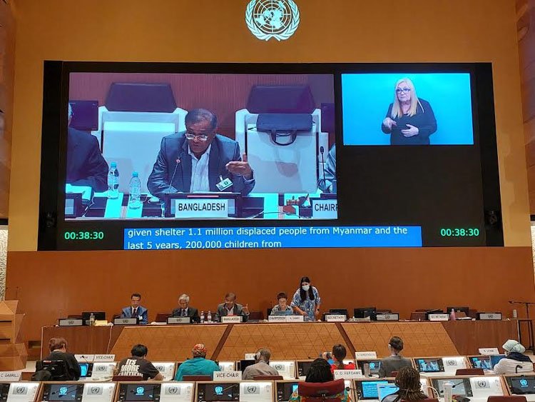 জেনেভায় জাতিসংঘে বাংলাদেশের স্থায়ী প্রতিনিধি রাষ্ট্রদূত মো. মুস্তাফিজুর রহমান, সমাজকল্যাণ সচিব মো. জাহাঙ্গীর আলম, জাতিসংঘে বাংলাদেশের উপ-স্থায়ী প্রতিনিধি সঞ্চিতা হক ও সংশ্লিষ্ট কর্মকর্তারা মন্ত্রীর সঙ্গে অধিবেশনে যোগ দিচ্ছেন।