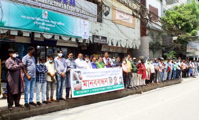 জেলা রিপোর্টার্স ইউনিটির সভাপতি শহীদুল্লাহ রাসেলের সভাপতিত্বে মানববন্ধনে উপস্থিত ছিলেন- নারায়ণগঞ্জ প্রেসক্লাবের সাবেক সাধারণ সম্পাদক এড. মোস্তফা করিম, বাংলাদেশ ফটো জার্নালিষ্ট এসোসিয়েশন কেন্দ্রীয় কমিটির সাবেক সভাপতি শফিউদ্দিন বিটু, জেলা রিপোর্টার্স ইউনিটির সাবেক সভাপতি মনির হোসেন মনির, জেলা রিপোর্টার্স ইউনিটির সাবেক সহ-সভাপতি রফিকুল্লাহ রিপন, জেলা ফটো জার্নালিষ্ট এসোসিয়েশনের সাবেক সাধারণ সম্পাদক এনামুল হক সিদ্দিকী, ফতুল্লা মডেল প্রেসক্লাবের সভাপতি আনিসুজ্জামান অনু, ফতুল্লা প্রেসক্লাবের সাধারণ সম্পাদক আব্দুর রহিম।