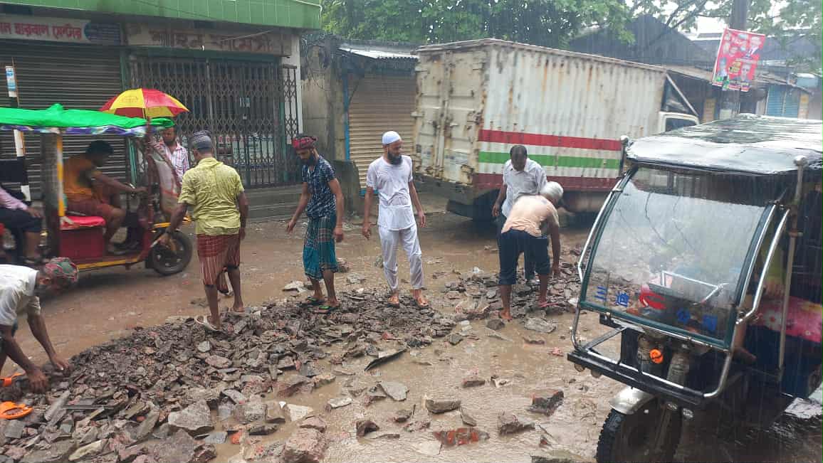 সোমবার সকাল থেকে নারায়ণগঞ্জ চেম্বার অব কমার্সের পরিচালক রিয়াদ মোহাম্মদ চৌধুরীর সার্বিক সহোযোগিতায় রাস্তাটি মেরামতে বৃস্টির ভিতর ভিজে ইটের টুকরো ও বালু দিয়ে ছোট -বড় গর্তগুলি ভরাট করে অনেকটাই চলাচলের উপোযোগি করে তুলছে। এতে স্থানীয় পথচারীরা ও বিভিন্ন চালকদের ভোগান্তি কিছুটা হলেও কমবে বলে মনে করেন নানা শ্রেনীর পেশাজীবি মানুষ।