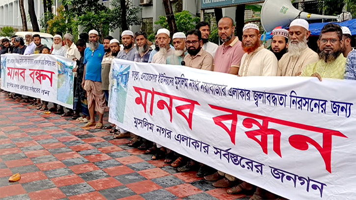 ফতুল্লার মুসলিমনগর, নবীনগর, শাসনগাঁও ও পশ্চিম মাসদাইর এলাকার জলাবদ্ধতা নিরসনের দাবিতে মানববন্ধন ও স্মারকলিপি প্রদান করা হয়েছে।