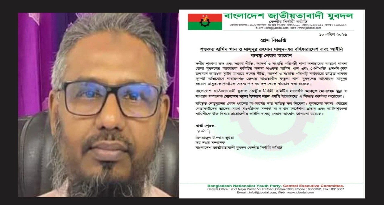 দলীয় সূত্রে জানা যায়, উক্ত ঘটনার প্রেক্ষিতে সাংগঠনিক শৃঙ্খলা ভঙ্গের অভিযোগে তার বিরুদ্ধে এই ব্যবস্থা নেওয়া হয়েছে।পেশীশক্তি প্রদর্শন, জনমনে আতঙ্ক সৃষ্টি এবং দলের নীতি, আদর্শ ও সাংগঠনিক শৃঙ্খলা পরিপন্থী কর্মকাণ্ডে জড়িত থাকার সুস্পষ্ট অভিযোগে তাকে প্রাথমিক সদস্য পদসহ দল থেকে বহিষ্কার করা হয়।