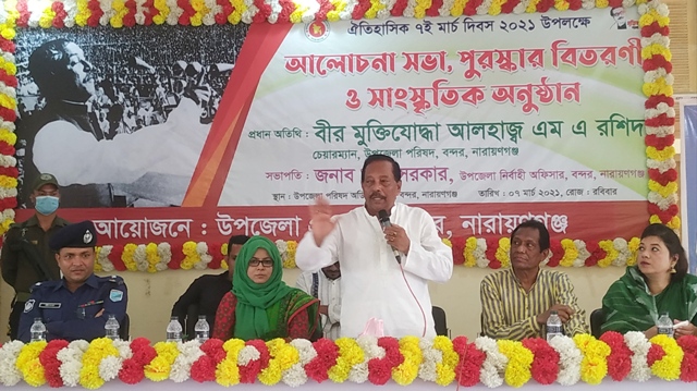 বন্দরে ঐতিহাসিক ৭ই মার্চ দিবস ২০২১ইং তথা জাতীয় দিবস উপলক্ষে আলোচনা সভা,পুরষ্কার বিতরণী ও সাংস্কৃতিক অনুষ্ঠান অনুষ্ঠিত হয়েছে। বন্দর উপজেলা প্রশাসনের আয়োজনে রোববার সকালে উপজেলা পরিষদের অডিটোরিয়ামে এ সভা অনুষ্ঠিত হয়।