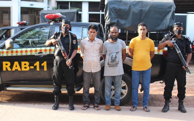 গ্রেফতারকৃতরা হলেন, ১। মোঃ সালাদ্দীন (৪৬), পিতা- মৃত নওয়াব মিয়া, সাং- রসুলবাগ, থানা-বন্দর, জেলা- নারায়ণগঞ্জ ২। মোঃ মুক্তার হোসেন (৪০), পিতা- আক্তার হোসেন, সাং- একরামপুর কদমরসুল কলেজ, থানা- বন্দর, জেলা- নারায়ণগঞ্জ এবং ৩। মোঃ সোহেল রানা (৪৩), পিতা- মৃত মতি মিয়া, সাং- একরামপুর কদমরসুল কলেজ, থানা- বন্দর, জেলা- নারায়ণগঞ্জ ।