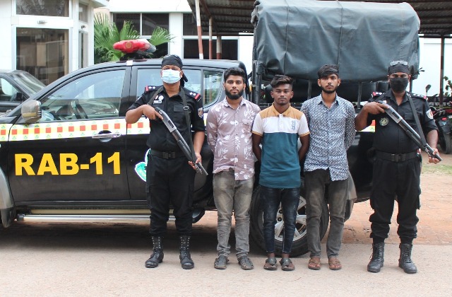 গ্রেফতারকৃতরা হলোঃ ১। মোঃ তাহের (২০), পিতা- মোঃ রহিম, সাং- চর শেরপুর, নয়াপাড়া, থানা- শেরপুর সদর, জেলা- শেরপুর, ২। মোঃ গনি (২২), পিতা- মোঃ সিলমত আলী, সাং- চর শেরপুর, নয়াপাড়া, থানা- শেরপুর সদর, জেলা- শেরপুর, ৩। মোঃ মাহাবুব শেখ (২৪), পিতা- মৃত মমিন শেখ, সাং- চর শেরপুর, নয়াপাড়া, থানা- শেরপুর সদর, জেলা- শেরপুর।