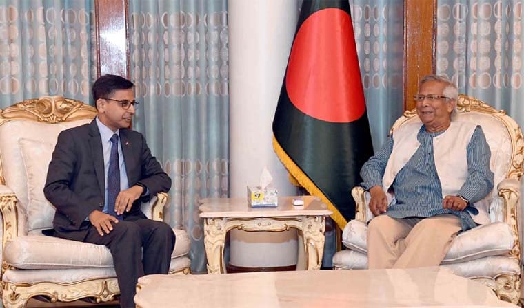 ভারতীয় হাইকমিশনারের সঙ্গে বৈঠকে ড. ইউনূস আন্তঃসীমান্ত নদীসমূহের অমীমাংসিত পানির হিস্যার বিষয়টি দ্রুত নিষ্পত্তি হয়ে যাবে বলে আশা প্রকাশ করেন।